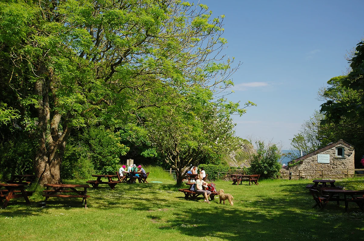 From the National Trust car park there's a short walk down to the golden sand, expanse of sea water, and the iconic Church Rock rising from the bay - it’s wild, beautiful, and just sheltered enough for a day with the kids. Dogs are welcome all year.