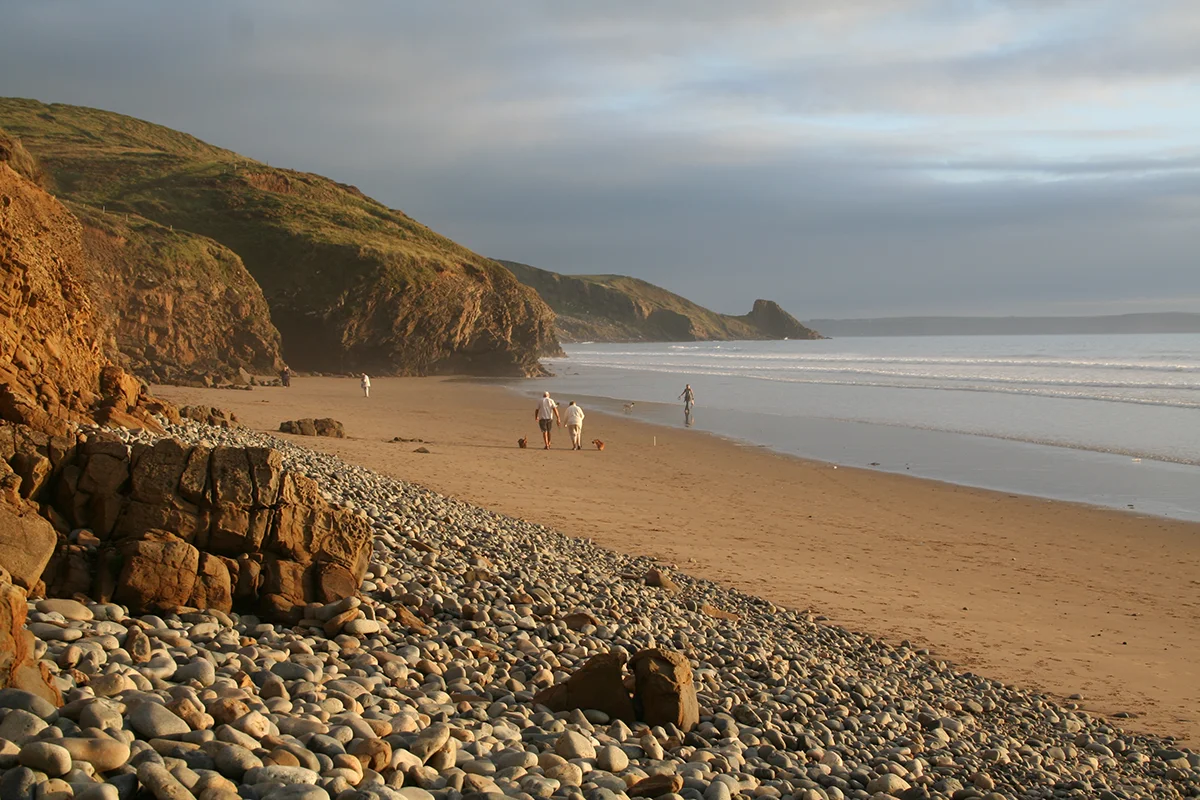 Regularly named among the UK’s most beautiful beaches - and with good reason. Accessible only by foot across the headland from Stackpole Quay, Barafundle is quiet, unspoiled and almost otherworldly. Soft sand, clear water, no facilities - and that’s exactly the charm. Dogs are welcome all year.